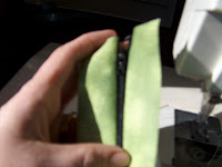 sandwich the zipper in between 2 layers of the banding fabric as shown. with the zipper closed.